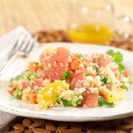 Look for recipes that use fresh, whole ingredients and that combine protein with healthy carbohydrates. For example, the following recipe for Rio Star Grapefruit & Quinoa Salad combines vegetables and citrus fruit with quinoa, a whole grain that supplies a complete protein.